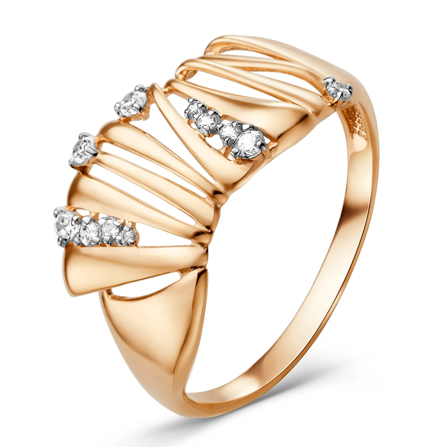 Кольцо из красного золота с фианитами