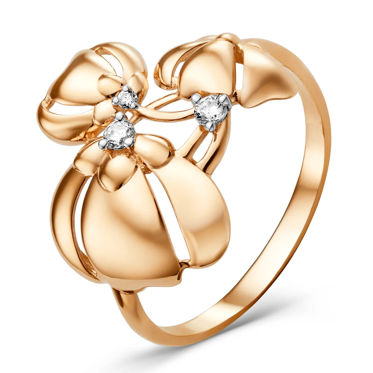 Кольцо из красного золота с фианитами