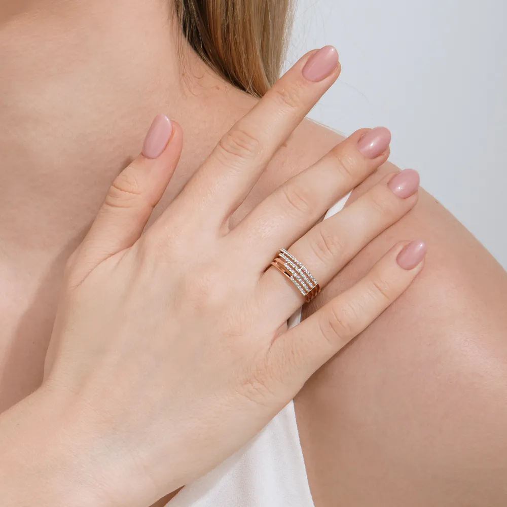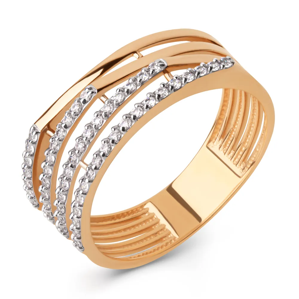 Кольцо из красного золота с фианитами