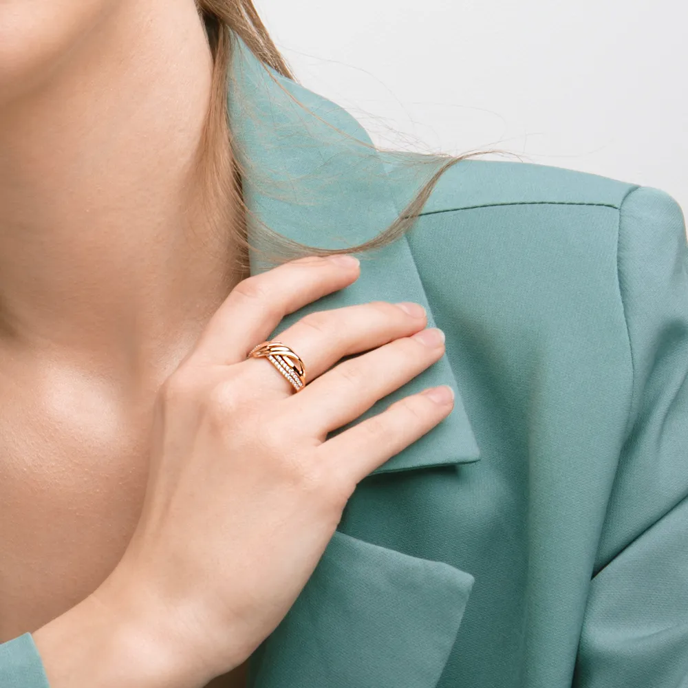 Кольцо из красного золота с фианитами