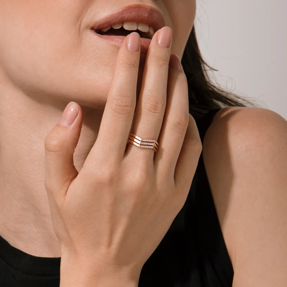 Кольцо из красного золота с фианитами