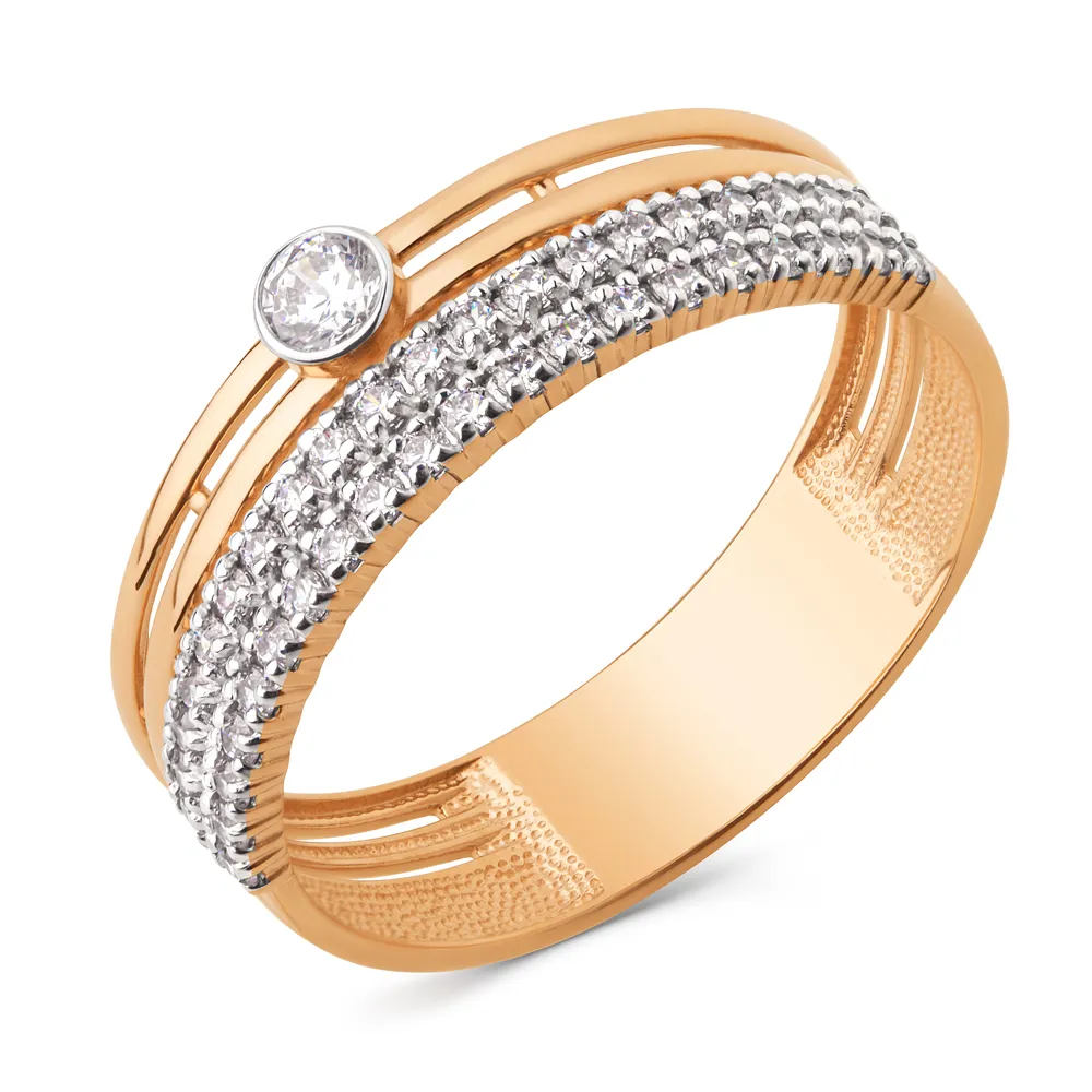 Кольцо из красного золота с фианитами