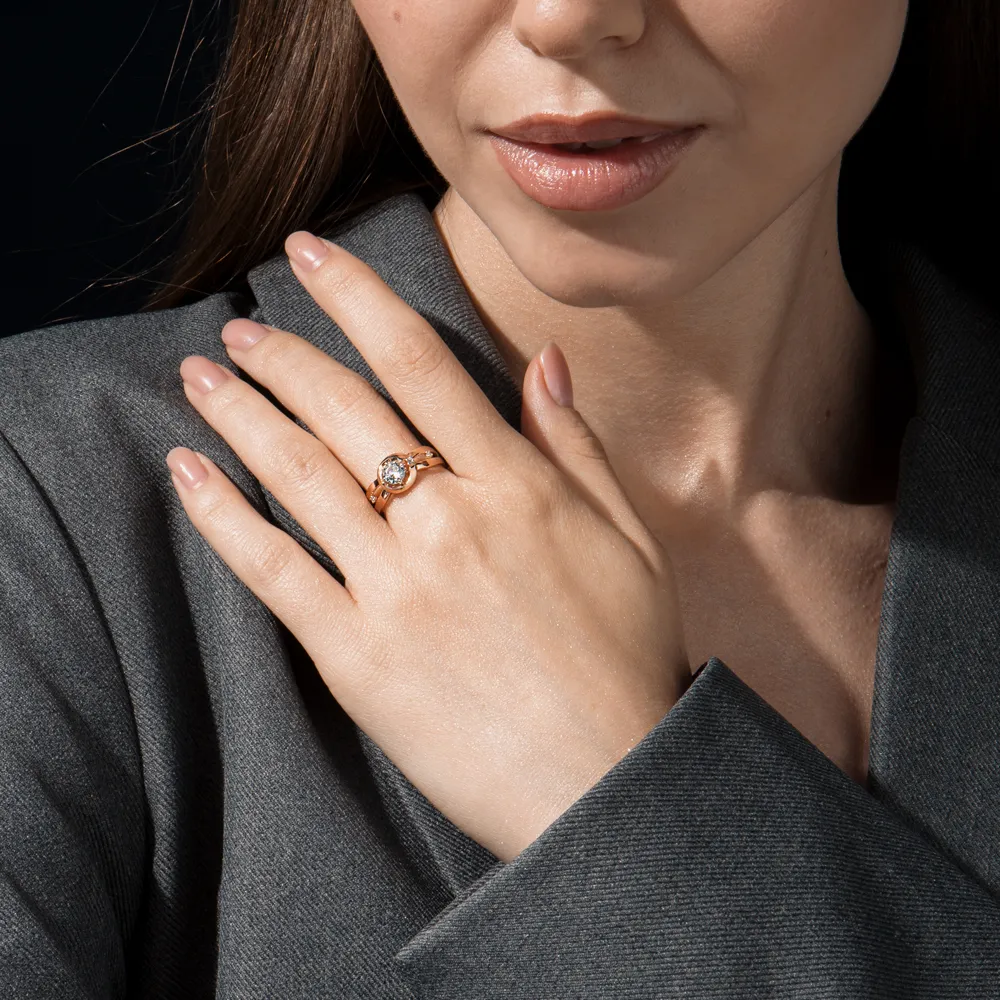 Кольцо из красного золота с фианитом