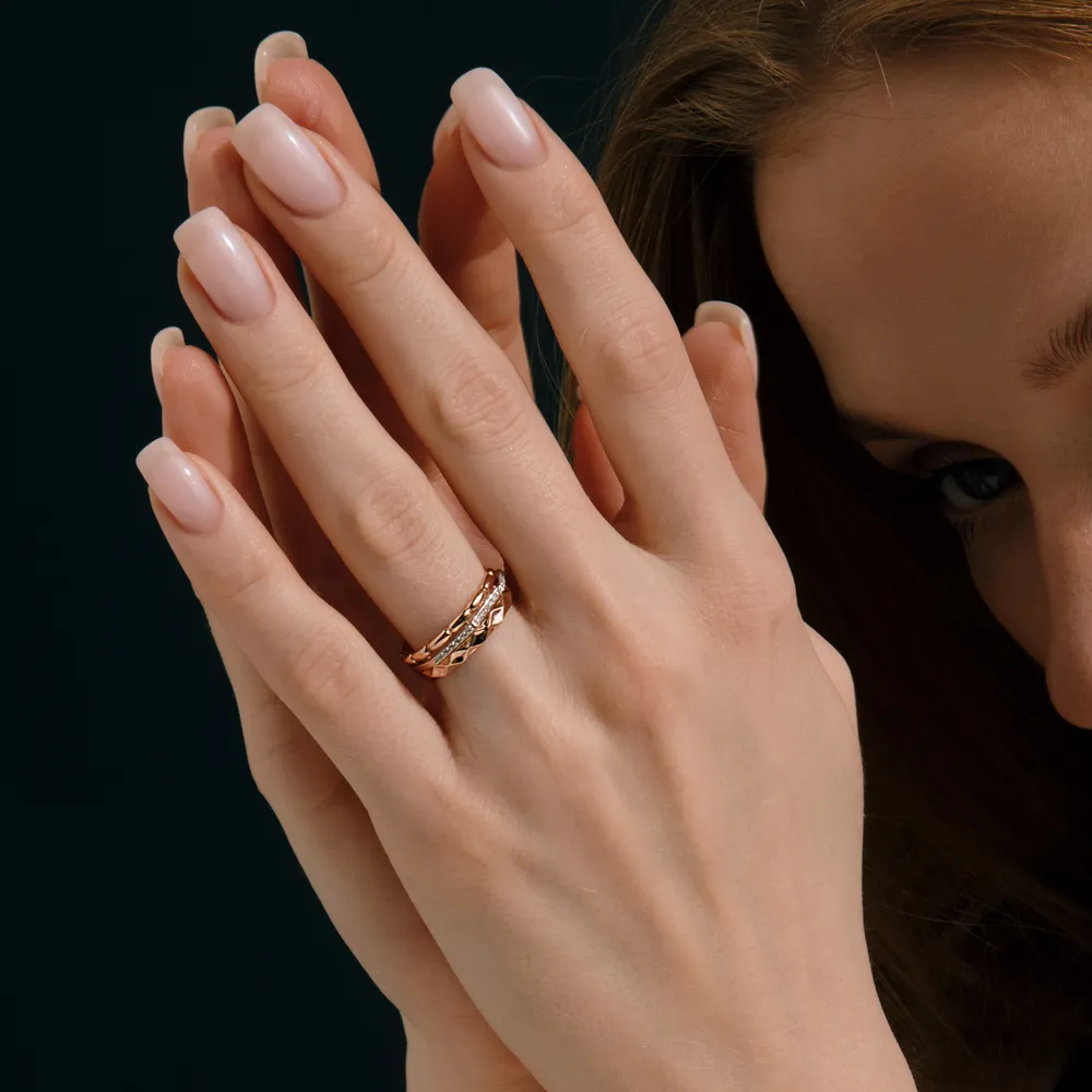 800077:337 Кольцо из красного золота с фианитами Коллекция - 0