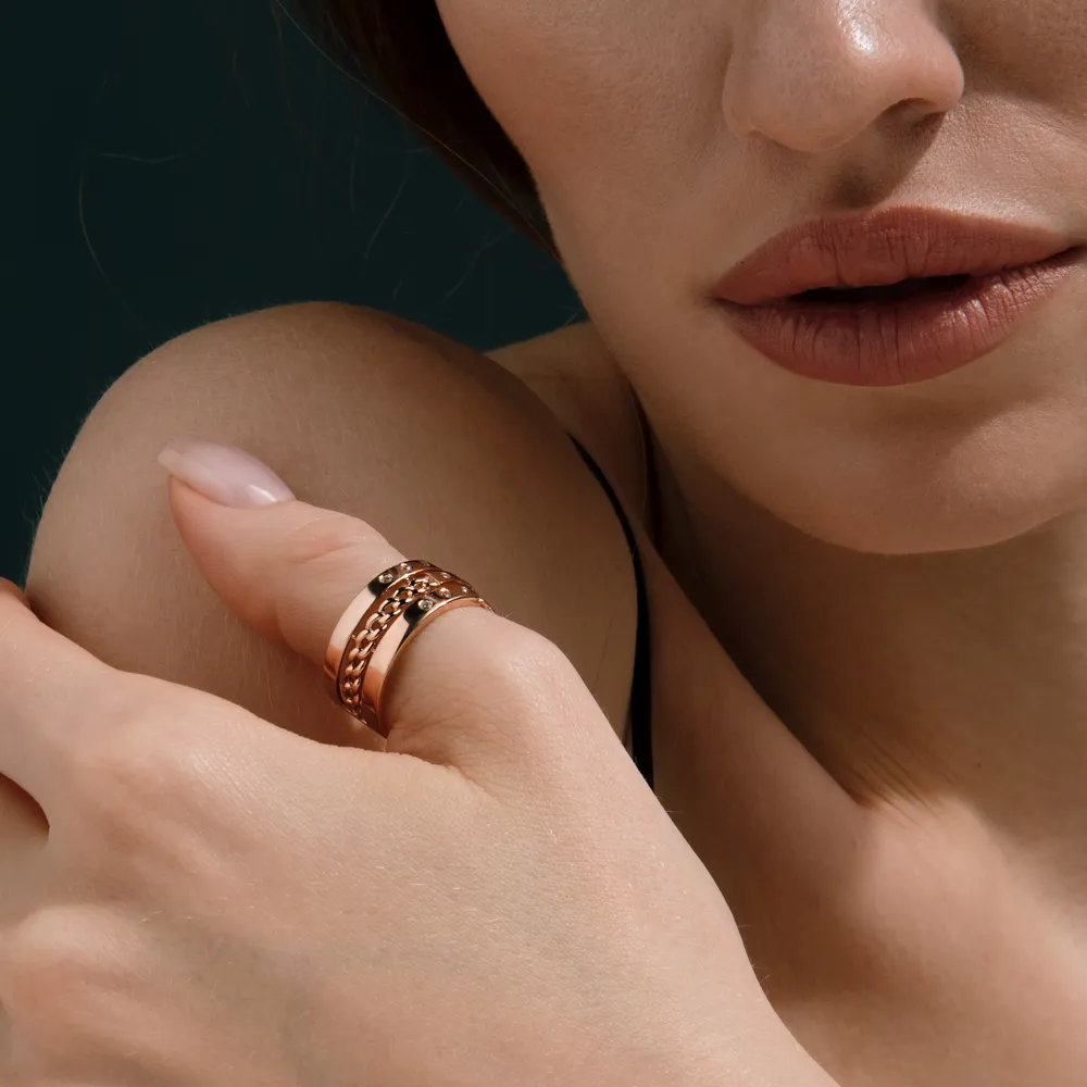 Кольцо из красного золота с фианитами