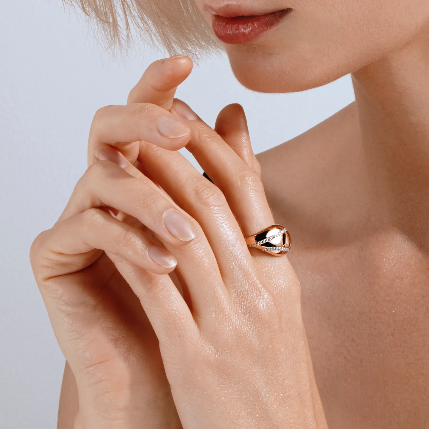 Кольцо из красного золота с фианитами