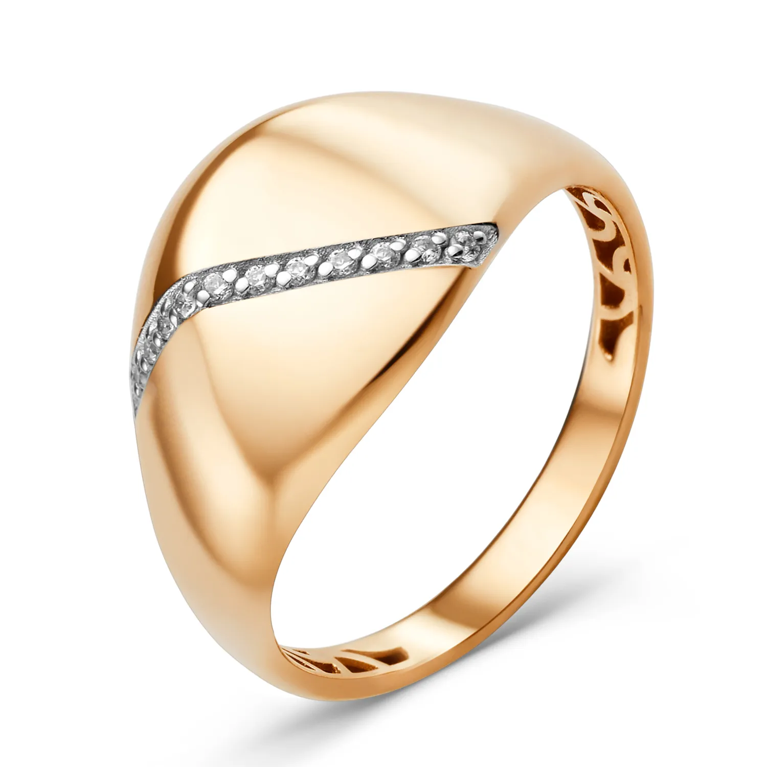 Кольцо печатка из красного золота с фианитами 902901-1102