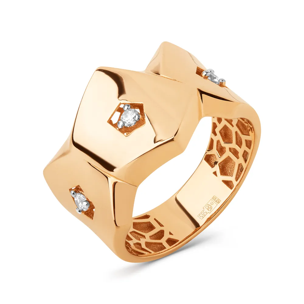 Кольцо из красного золота с фианитами