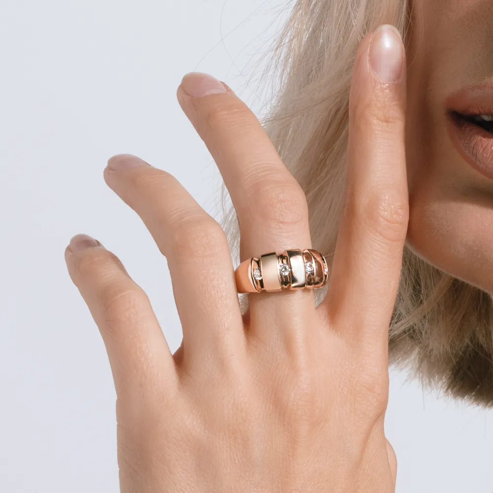 Кольцо печатка из красного золота с фианитами 902901-1102