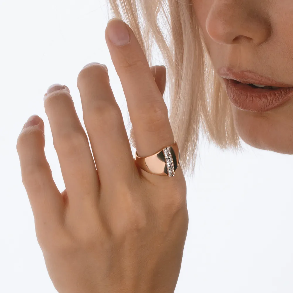 Кольцо печатка из красного золота с фианитами 902901-1102