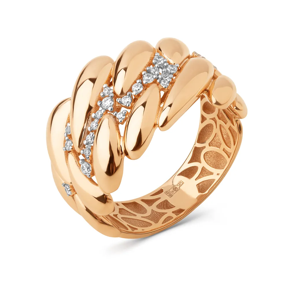 Кольцо из красного золота с фианитами