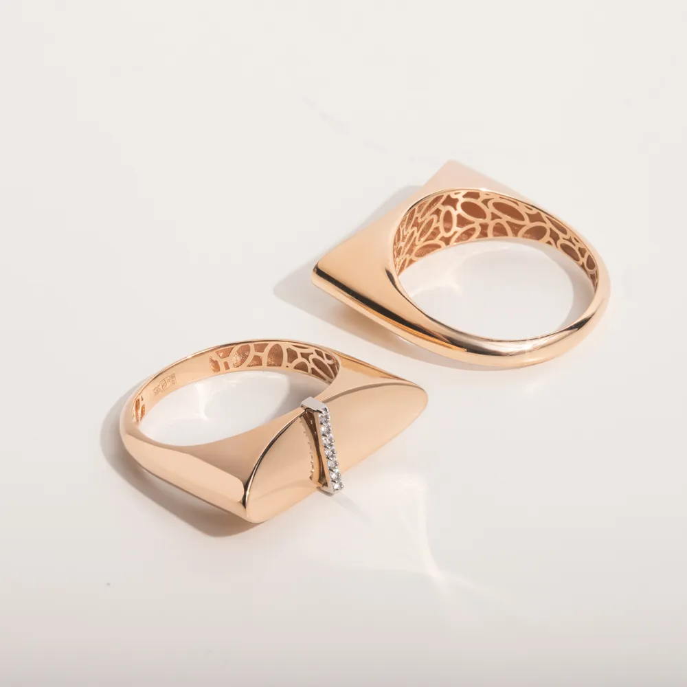 Кольцо печатка из красного золота с фианитами 902901-1102