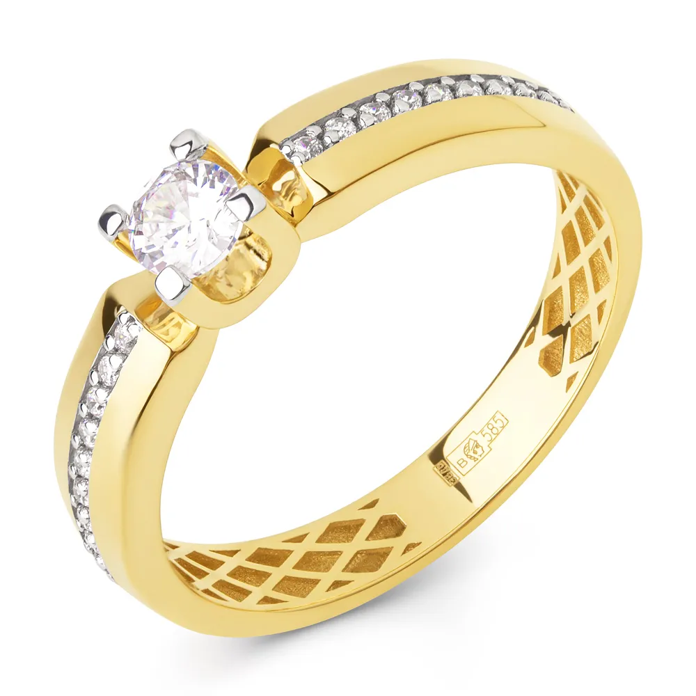 Кольцо из желтого золота с фианитами