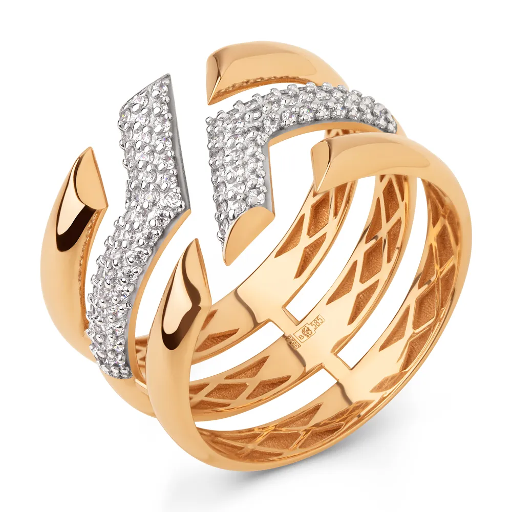 Кольцо из красного золота с фианитами