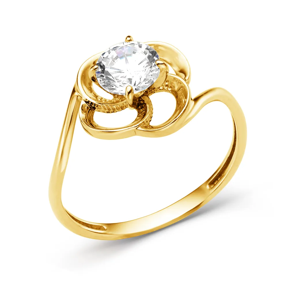 Кольцо из желтого золота с фианитом
