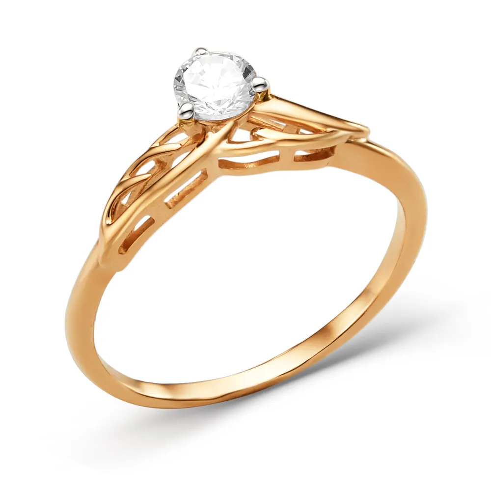 Кольцо из красного золота с фианитом