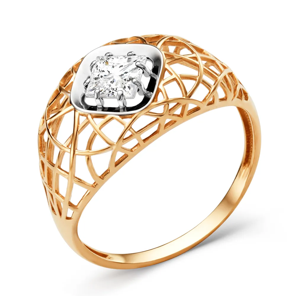 Кольцо из красного золота с фианитом