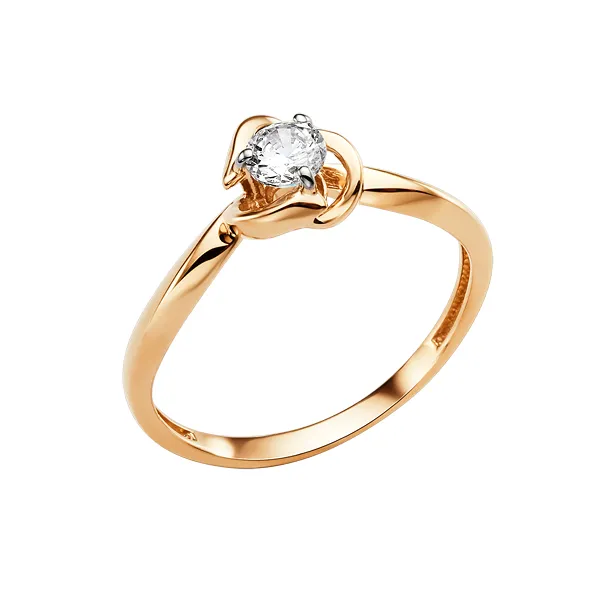 Кольцо из красного золота с фианитом