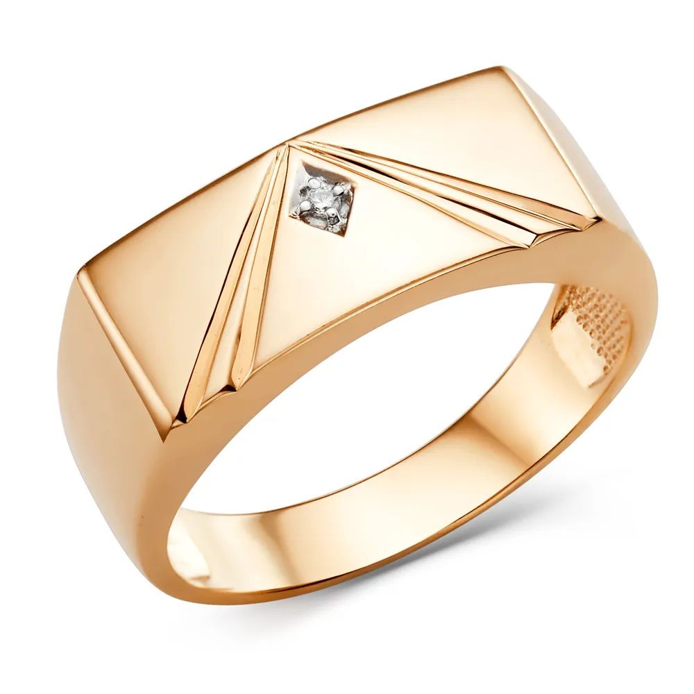 Кольцо печатка из красного золота с фианитами 902901-1102