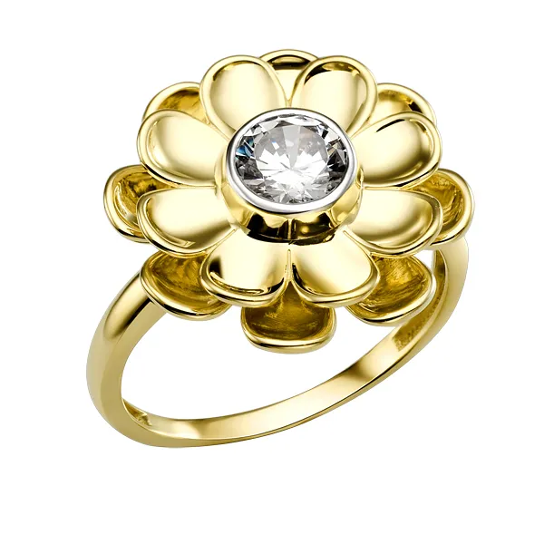645849:337 Кольцо из желтого золота с фианитом Коллекция - Основная 0