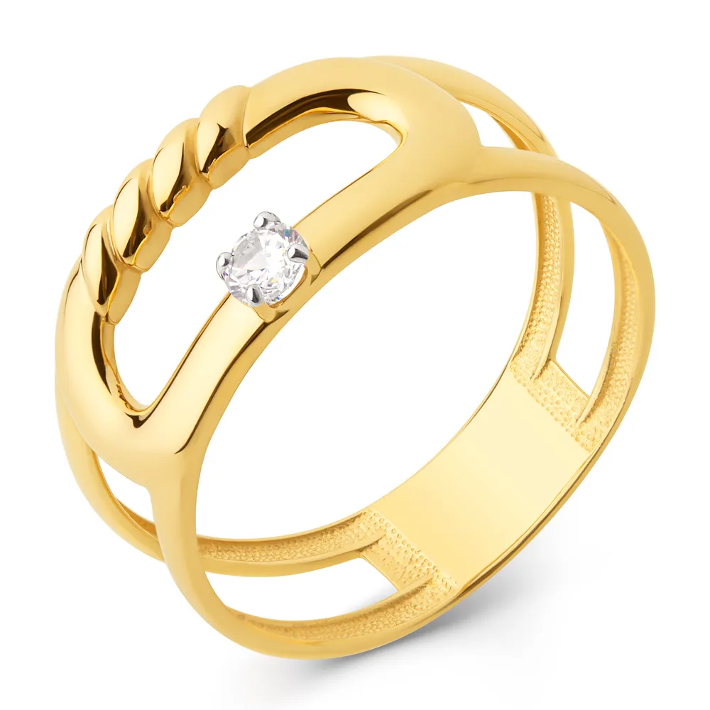 801999:337 Кольцо из желтого золота с фианитом Коллекция - 0