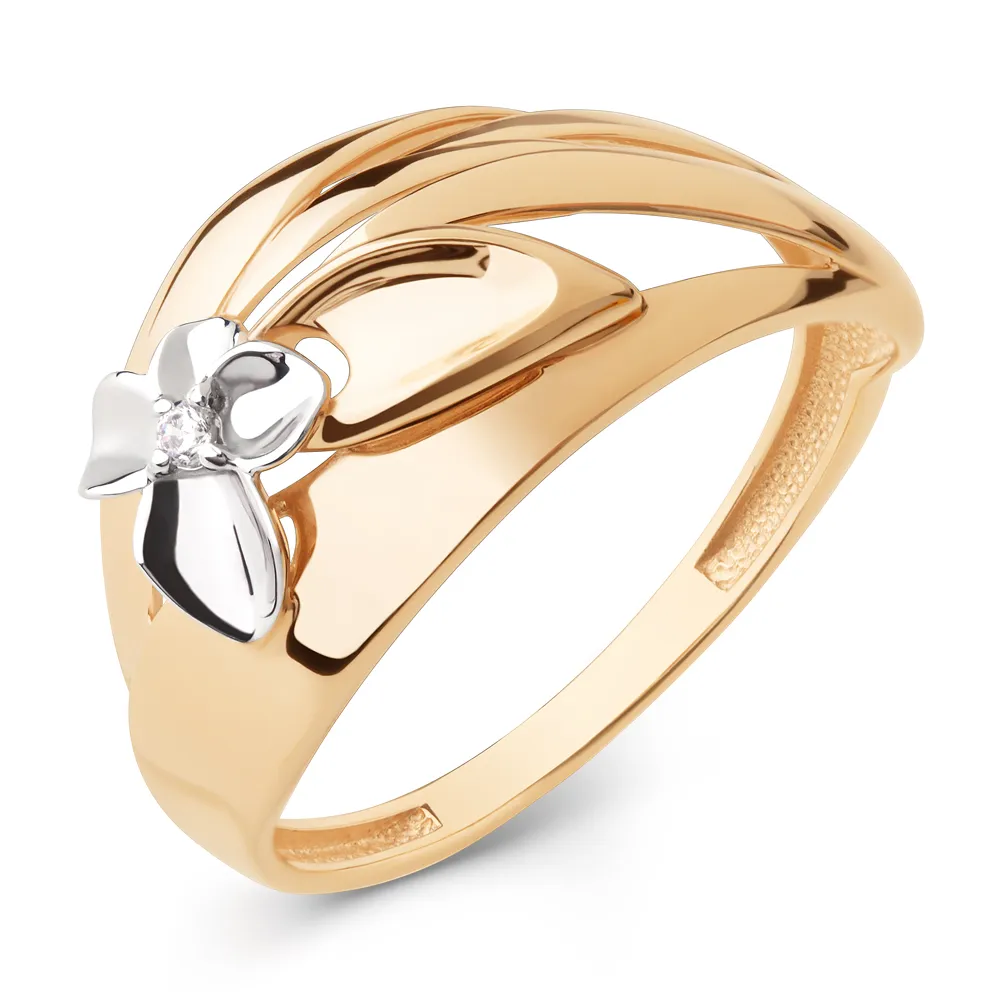 Кольцо из красного золота с фианитом