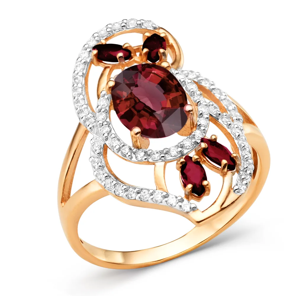 Кольцо из красного золота с гранатами