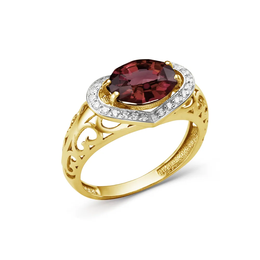 Кольцо из желтого золота с гранатом
