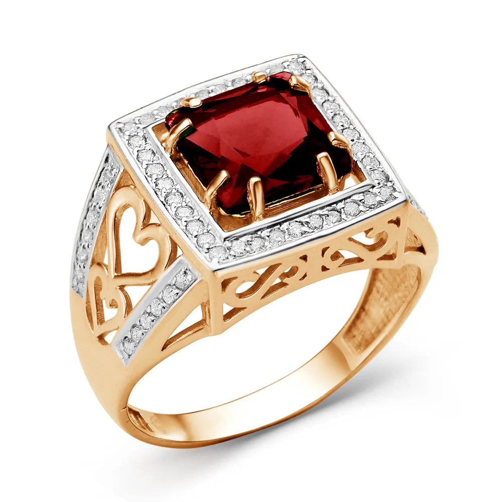 Кольцо из красного золота с фианитами