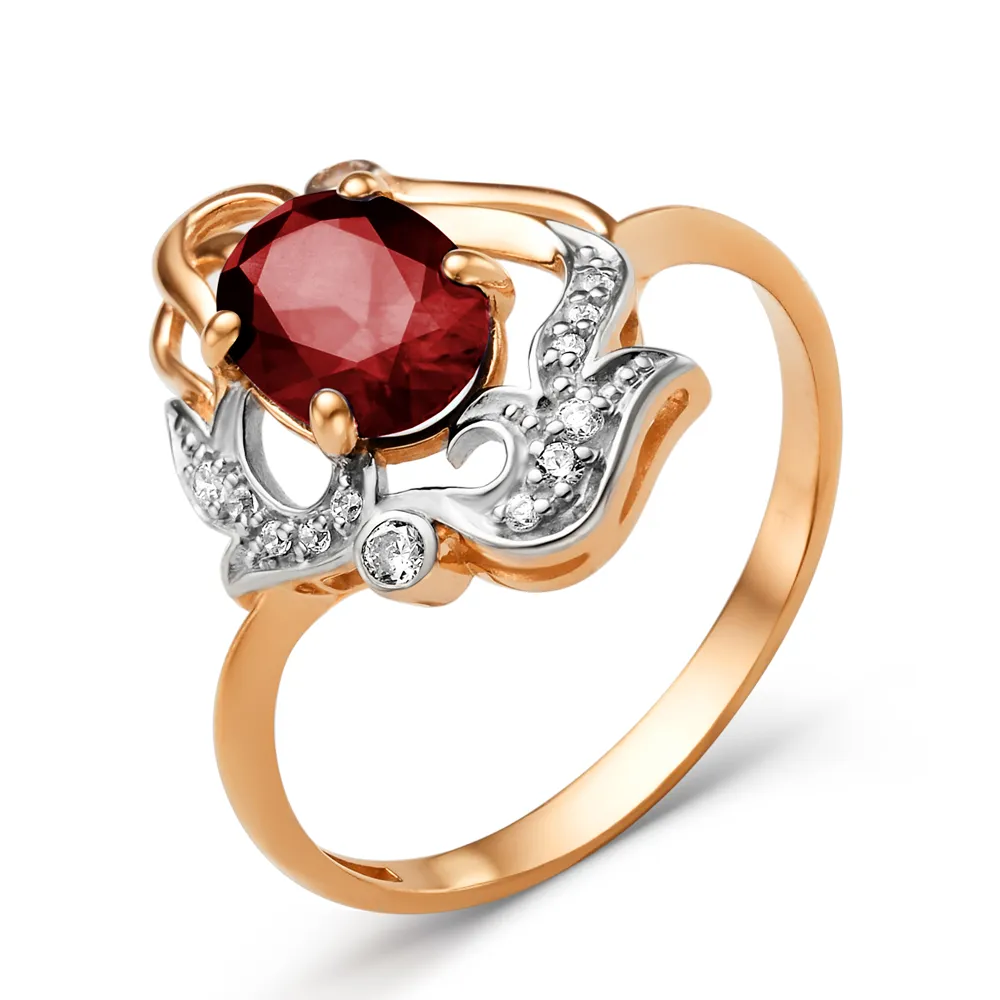 Кольцо из красного золота с гранатом