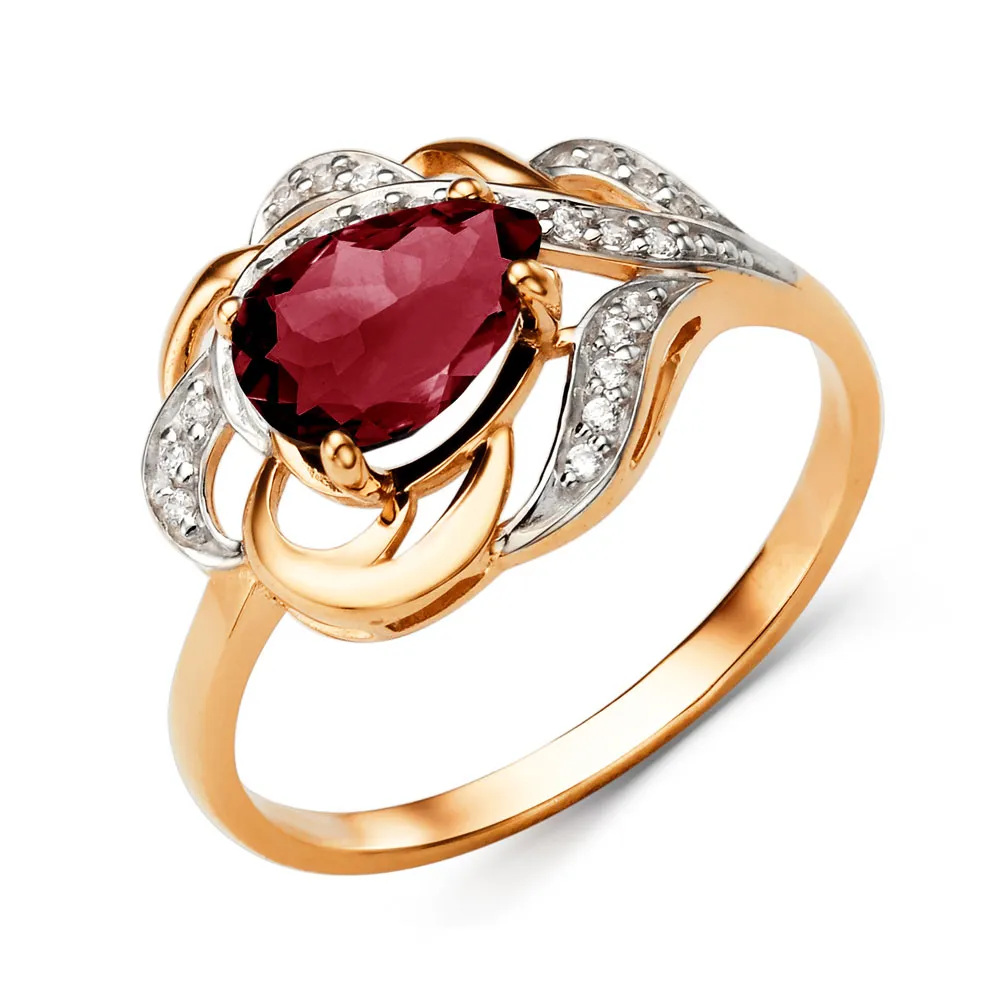 Кольцо из красного золота с гранатом