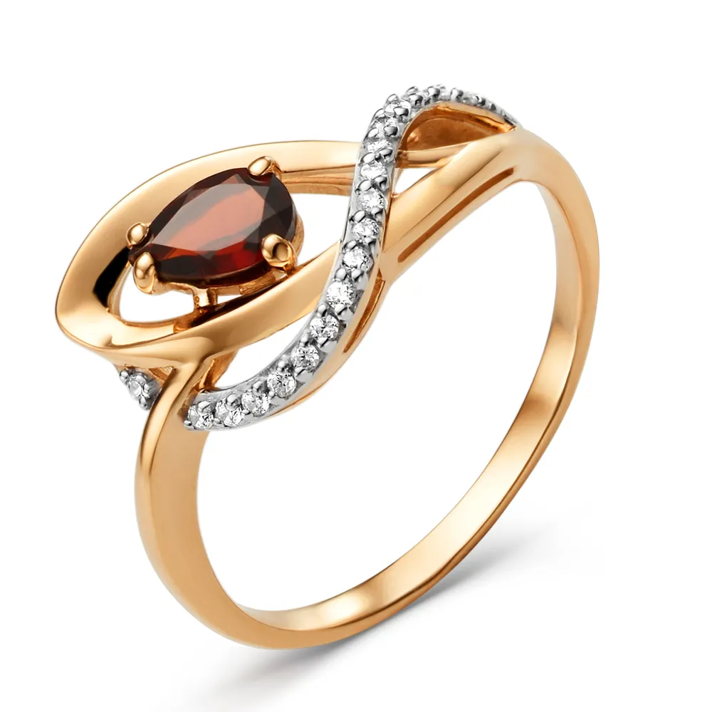 Кольцо из красного золота с гранатом