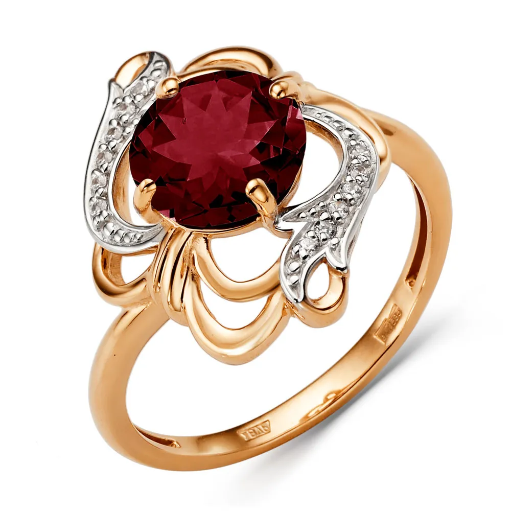 Кольцо из красного золота с гранатом