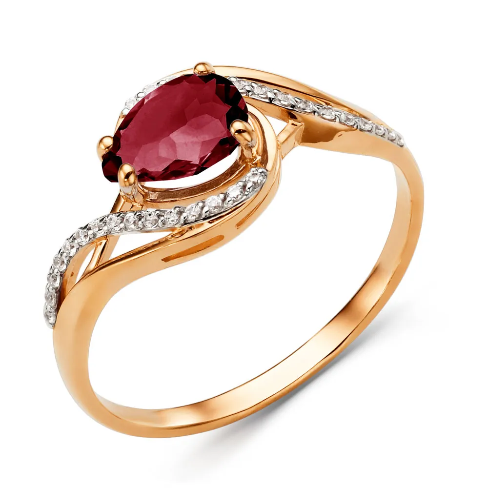 Кольцо из красного золота с гранатом