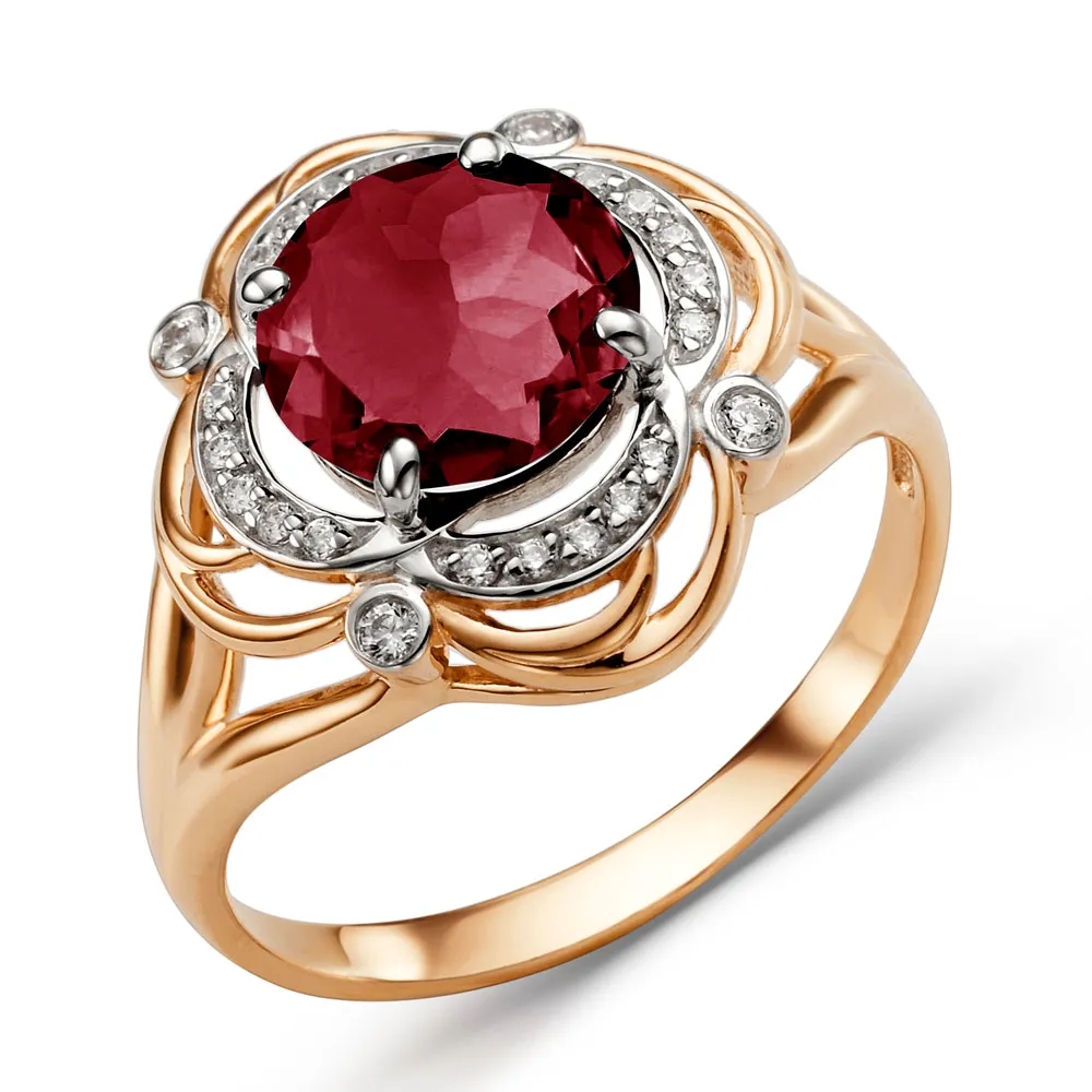 Кольцо из красного золота с фианитами