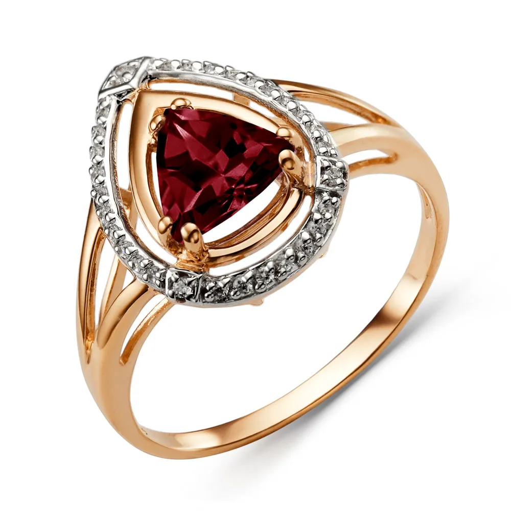 Кольцо из красного золота с гранатом