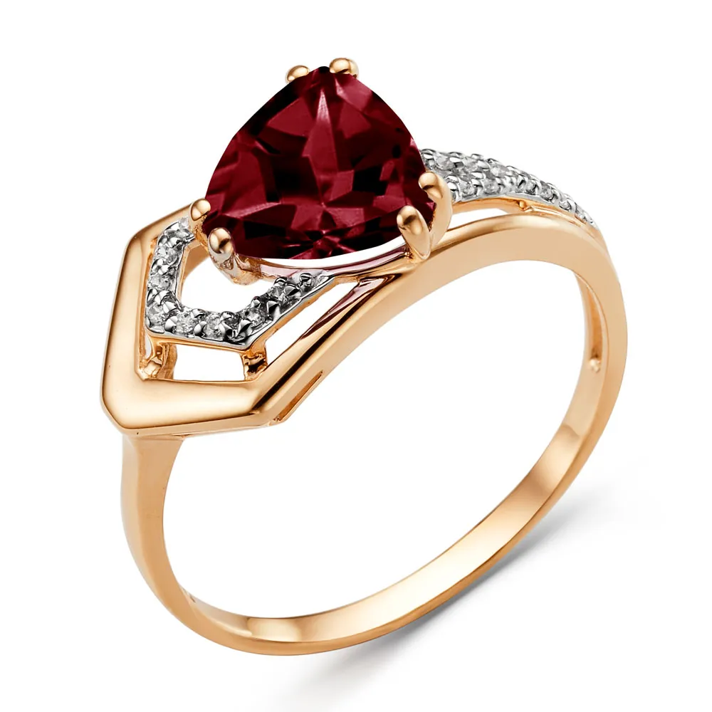 Кольцо из красного золота с гранатом