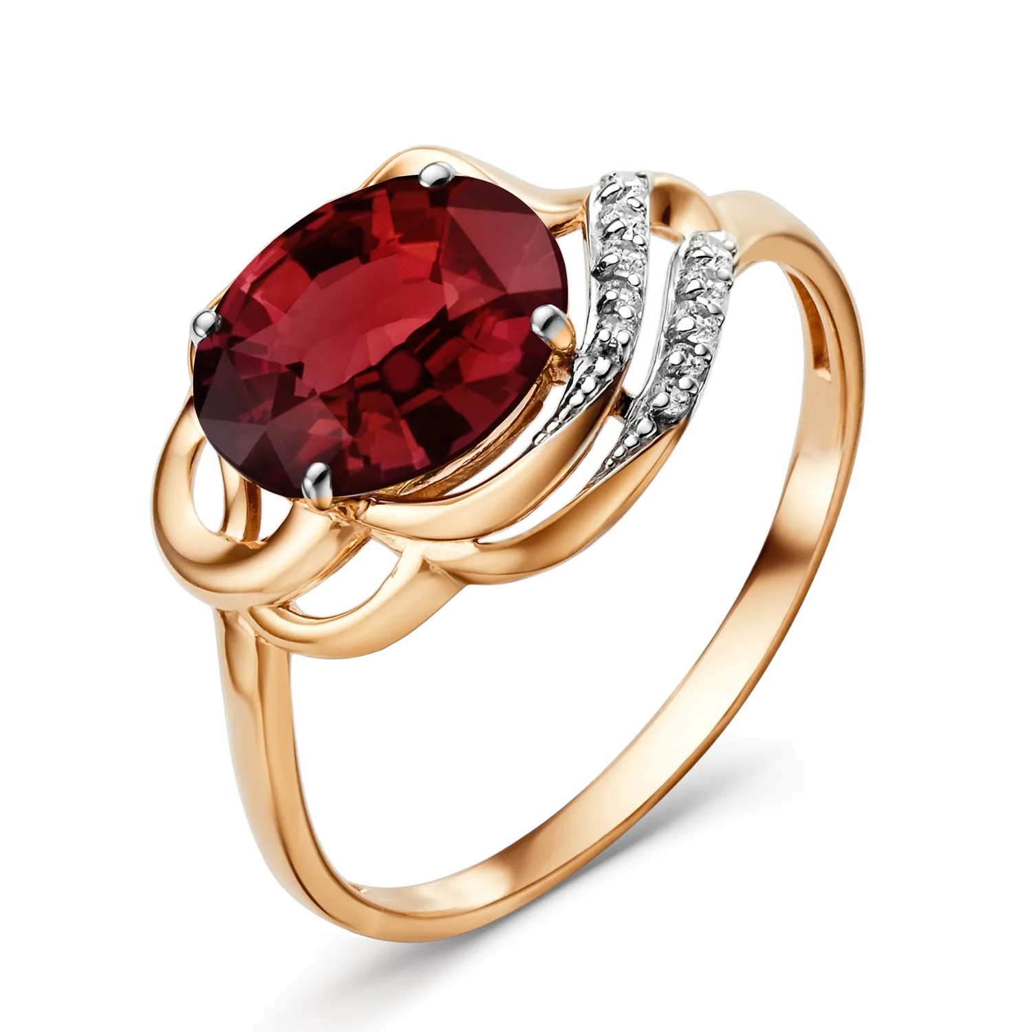 Кольцо из красного золота с гранатом
