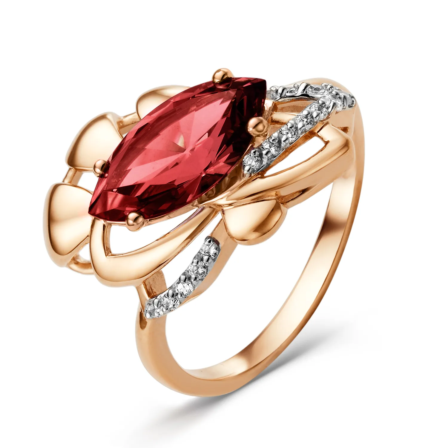 Кольцо из красного золота с фианитами