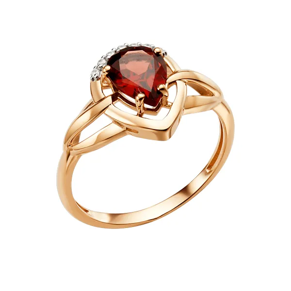 Кольцо из красного золота с гранатом