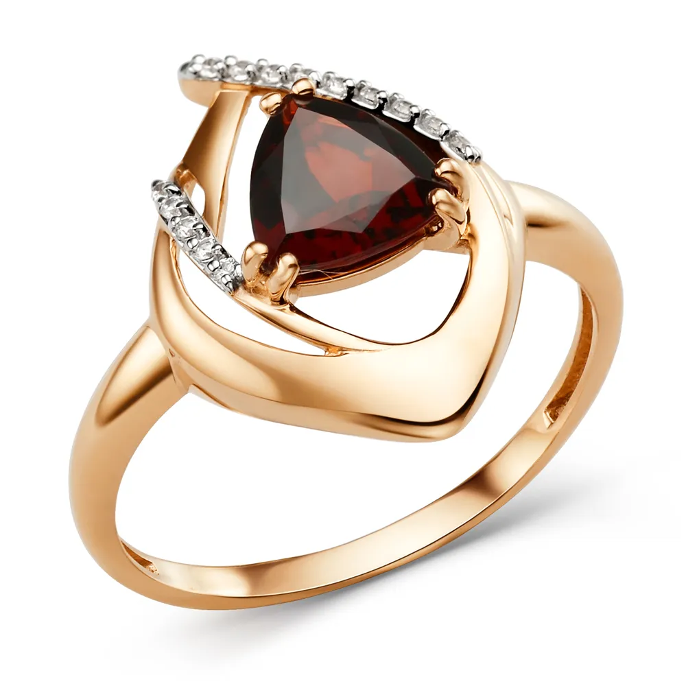 Кольцо из красного золота с гранатом