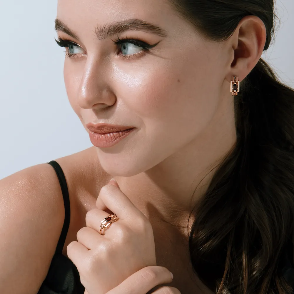 Кольцо из красного золота с гранатом