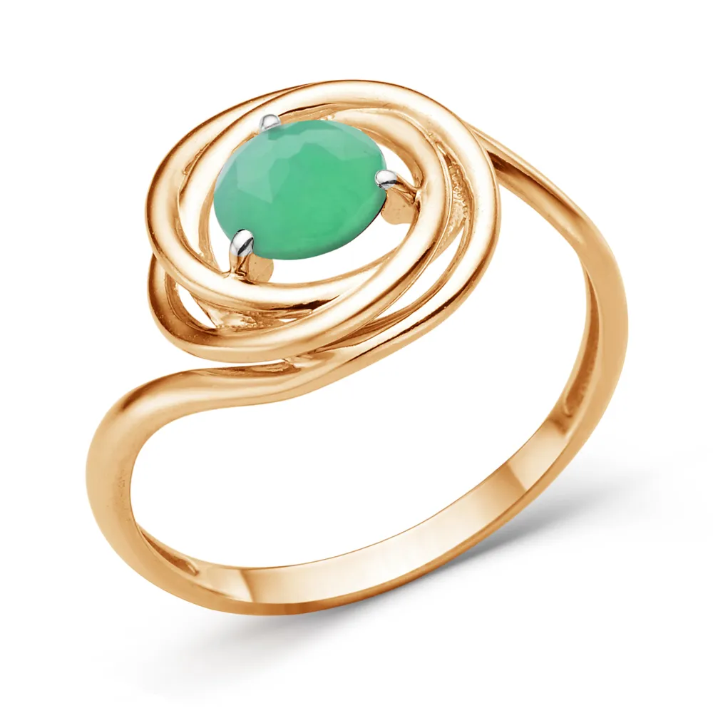 Кольцо из красного золота с ониксом зеленым