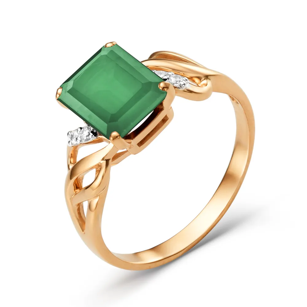 Кольцо из красного золота с ониксом зеленым