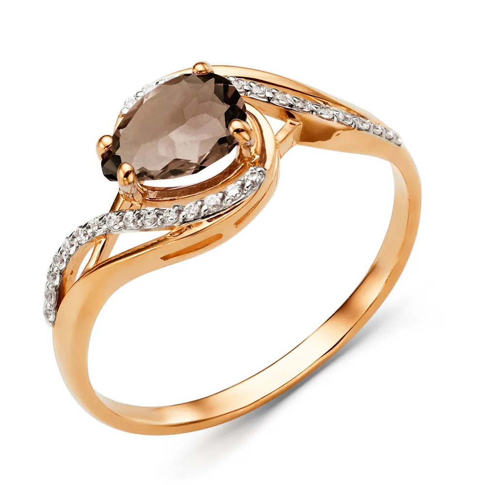 Кольцо из красного золота с раухтопазом