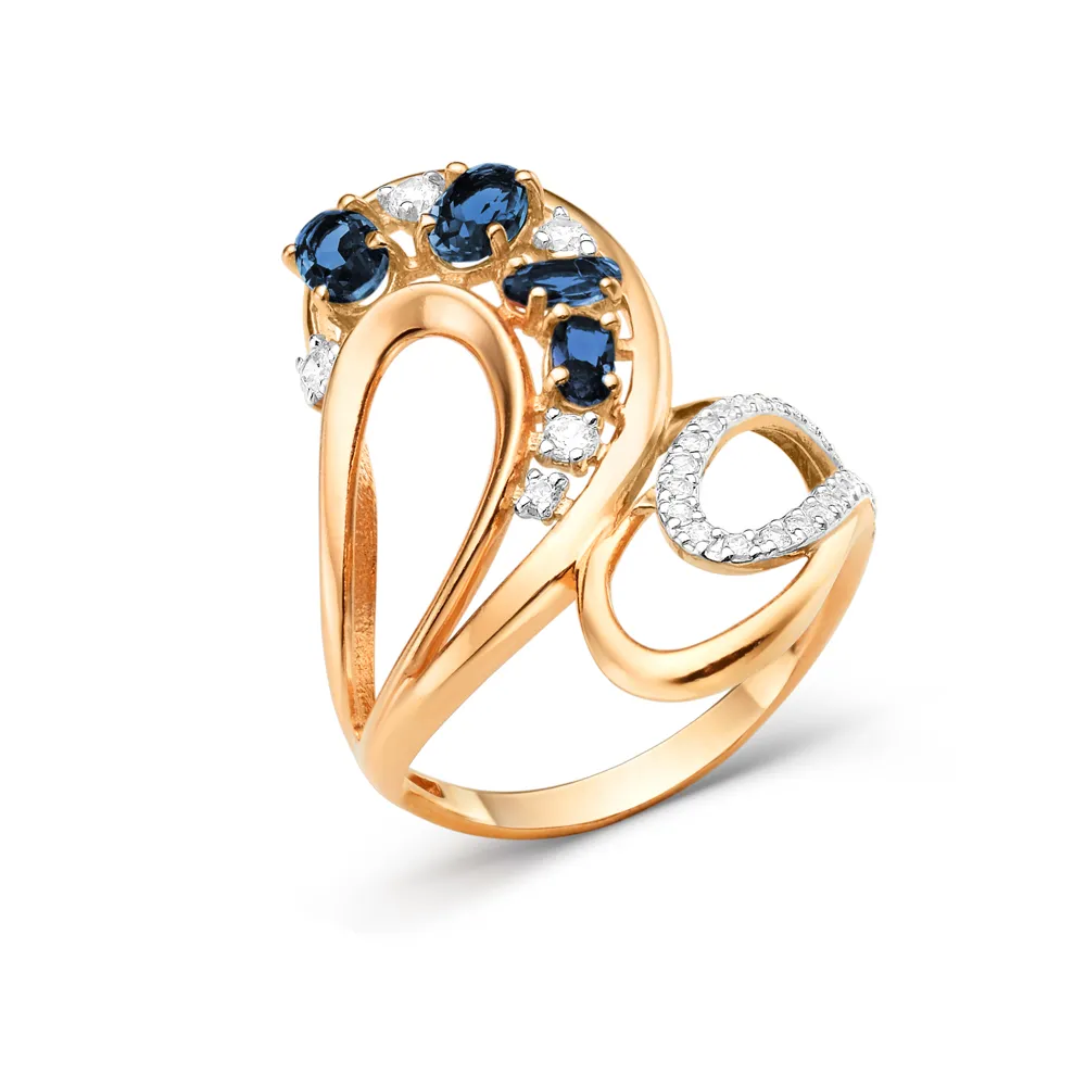 Кольцо из красного золота с сапфирами
