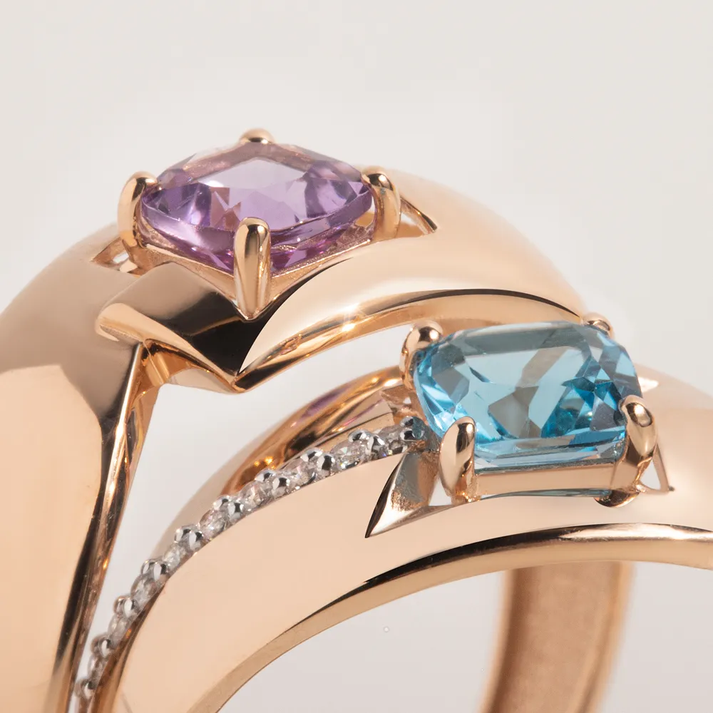 Кольцо печатка из красного золота с фианитами 902901-1102