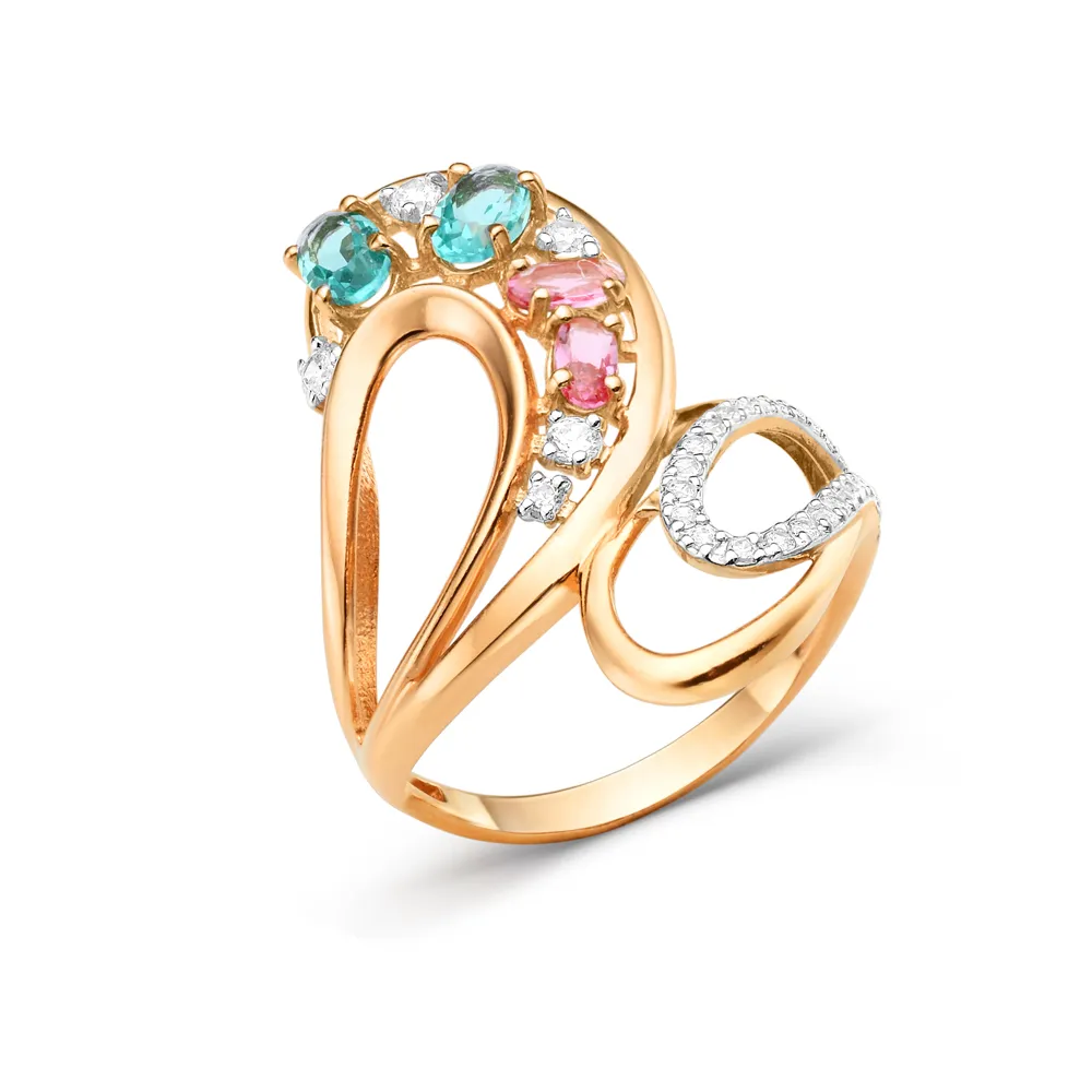 Кольцо из красного золота с ювелирными кристаллами