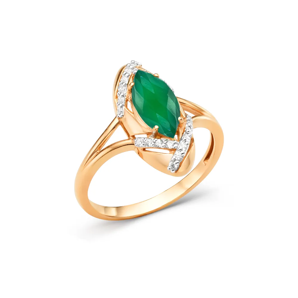 610529:337 Кольцо из красного золота с зеленым агатом Коллекция - Основная 0