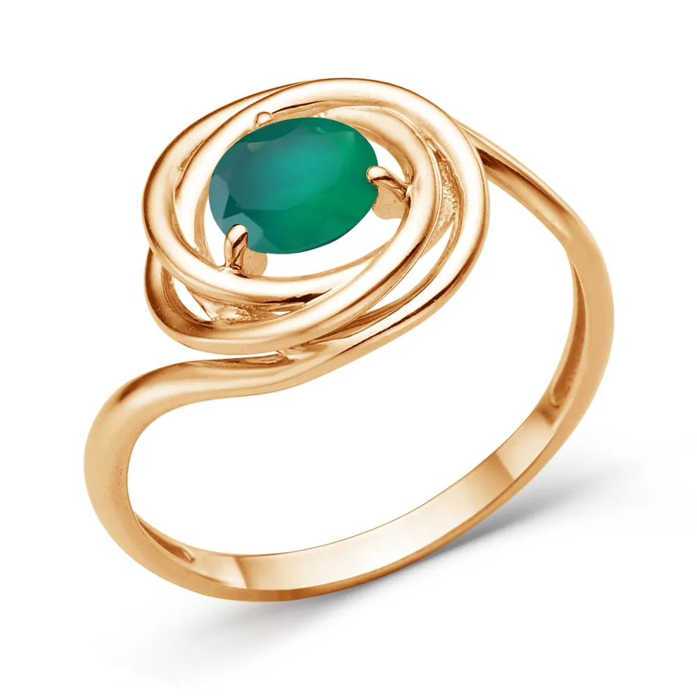 613911:337 Кольцо из красного золота с зеленым агатом Коллекция - Основная 0